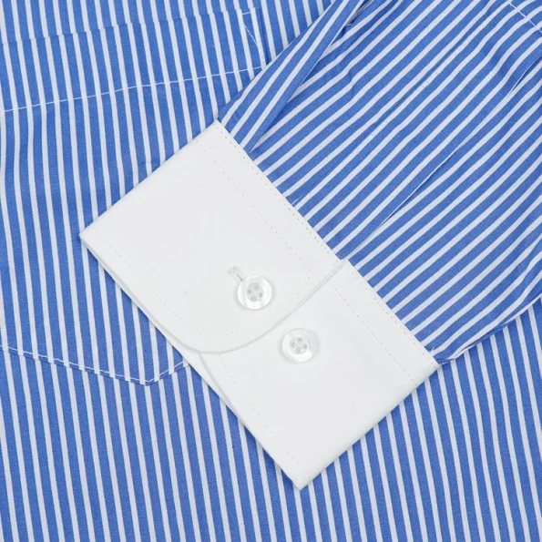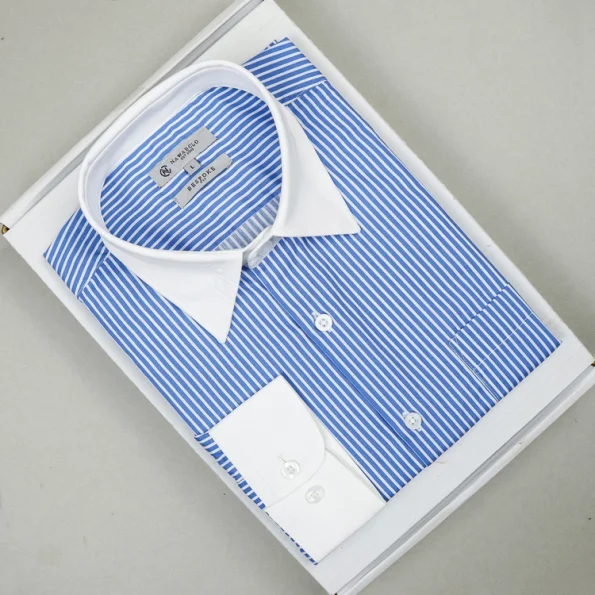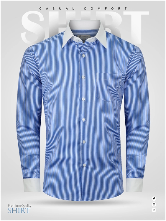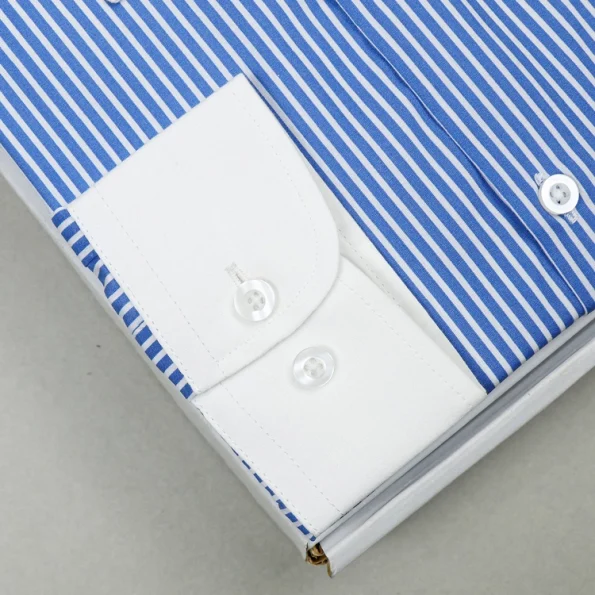 Made to deliver a sharp executive look in a tailored fit, this blue-striped formal shirt is crafted from fine cotton for optimal comfort and resilience to withstand many washes—perfect for refined professional styling, all-year.