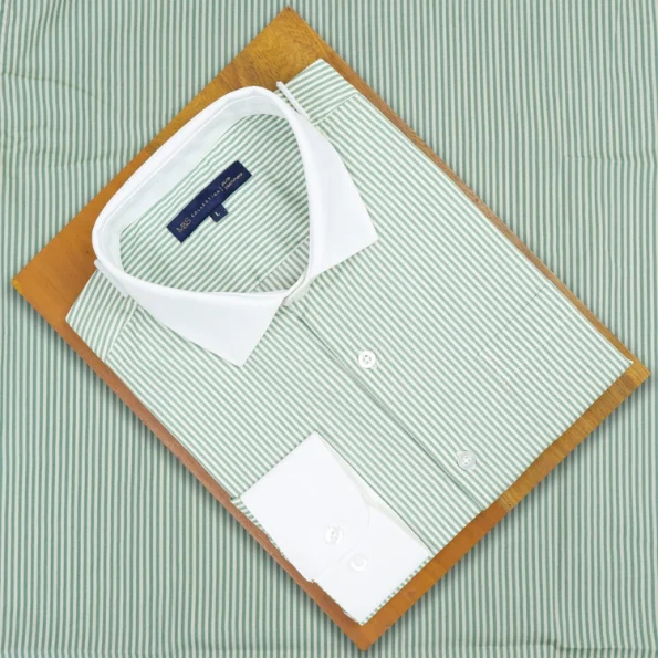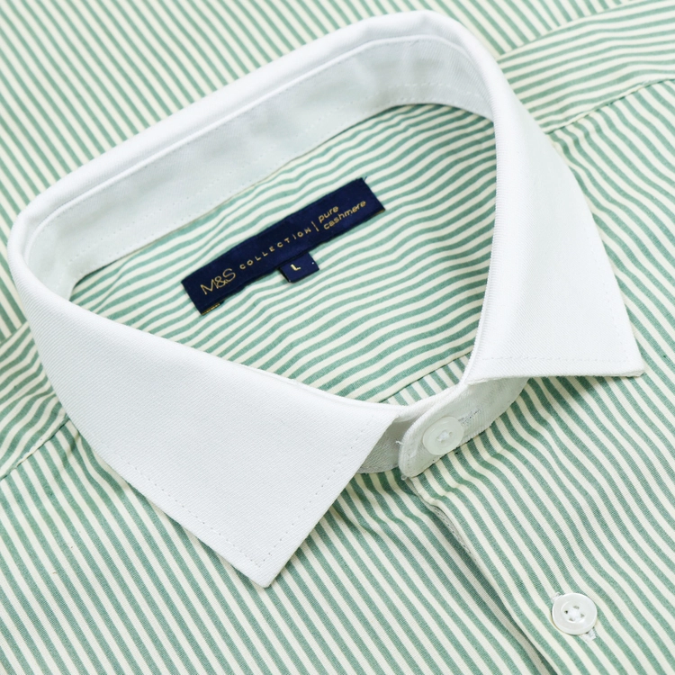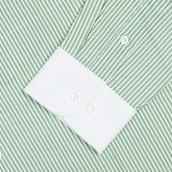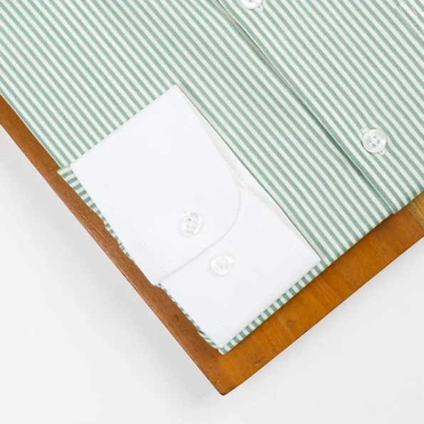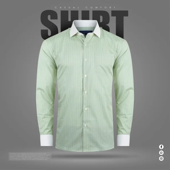 Made to deliver a sharp executive look in a tailored fit, this light Sky-white vertical-striped formal shirt is crafted from yarn-dyed, fine cotton for optimal comfort and resilience to withstand many washes—perfect for refined professional styling, all-year.